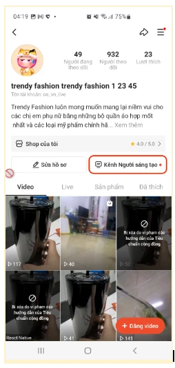 - Qua profile: Mở app Shopee → vào Tôi → chọn mục Kênh Người Sáng Tạo.